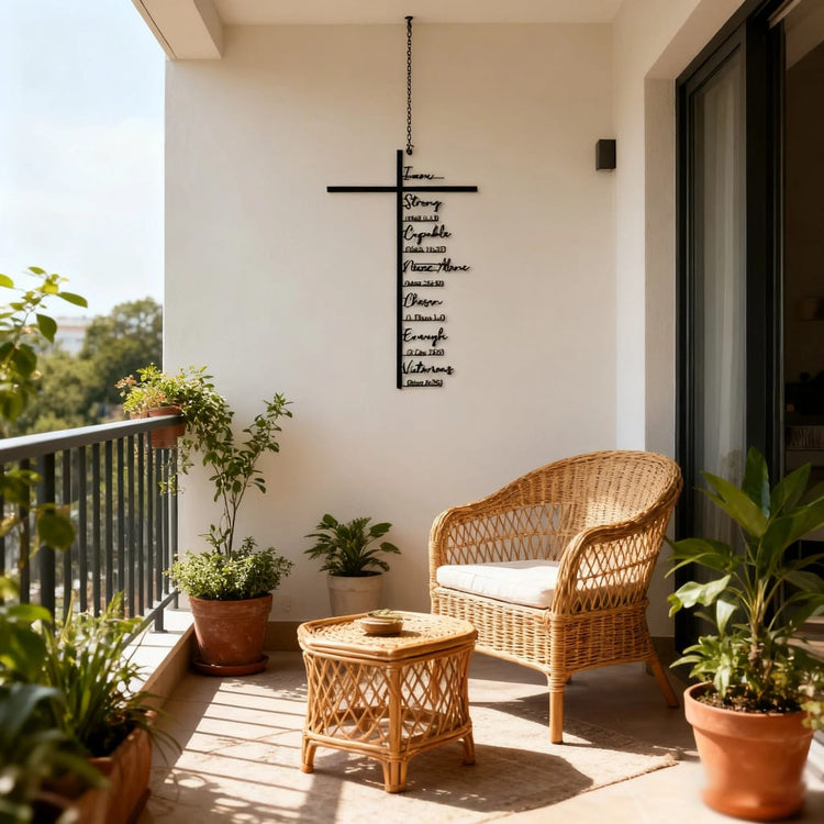 Browse inspiring setups showcasing our handcrafted metal heart and cross décor. Perfect for both indoor sanctuaries and outdoor retreats.